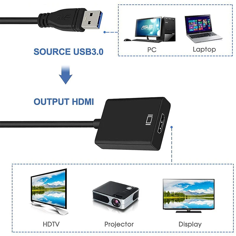 با استفاده از رابط USB 3.0 با سرعت فوق العاده با پهنای باند بالا (5 گیگابیت در ثانیه) برای انتقال بی عیب و نقص ویدیوی HD به مانیتور یا پروژکتور شما مانند یک کارت گرافیک خارجی کار می کند. پشتیبانی از رزولوشن تا 1920x1080@60Hz برای گرافیک پیشرفته را انجام می دهد. پورت USB 3.0 فوق سریع و تراشه داخلی با کیفیت عالی برای عملکرد پایدار و عمر طولانی طراحی شده است.. معادل یک کارت گرافیک خارجی برای ارائه ویدیوی HD صاف به تلویزیون HD شما است. این آداپتور USB 3.0 به HDMI برای اتصال دستگا ...